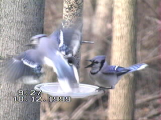 Die zwei Bilder oben zeigen blaue Eichelhäher - sie stammen von www.maruhn.net. Hier noch einmal vielen Dank für die Erlaubnis, die Bilder zu verwenden.